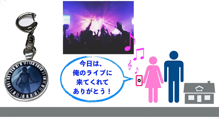 盛り上がったコンサートが終わっても、このキーホルダーをスマホにかざすと、大好きなミュージシャンが自分だけに語りかけます。