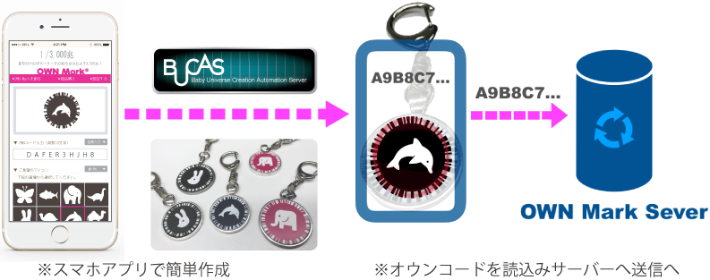 オウンマークとは、ベビーユニバース社の登録商標で、全人類(現在77億人)に1人約40万個づつ付与できる次世代のIDマークです。